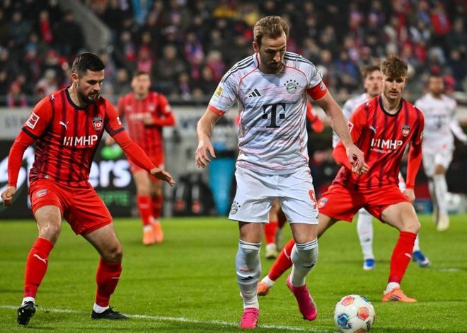 比賽第12分鐘,約納坦-塔在門前頭球攻門,頂?shù)锰?。門將站在原地就把球擋出。3分鐘后,拜仁進(jìn)球了!依靠角球機(jī)會(huì),斯塔尼希奇門前頭球補(bǔ)射破門。拜仁開局很順利。第32分鐘,拜仁再次進(jìn)球。伊藤洋輝的射門被擋了一下,皮球飛到門前。奧利塞輕松把球打進(jìn)空門。5分鐘后,凱恩凌空抽射,門將把球摘下。半場(chǎng)結(jié)束,拜仁2-0領(lǐng)先海登海姆。